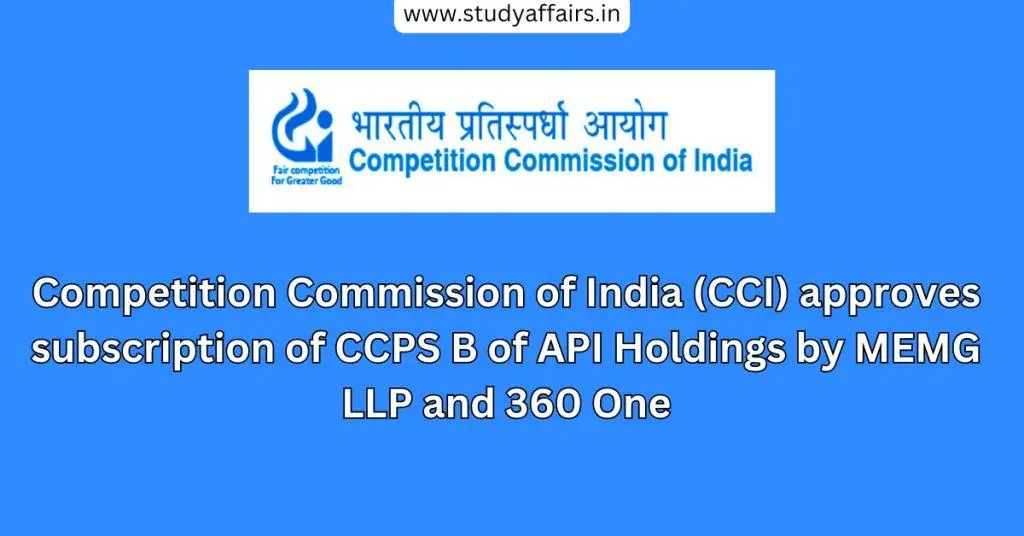 Recently, the Competition Commission of India (CCI) has approved the subscription of CCPS B of API Holdings by MEMG LLP and 360 One.