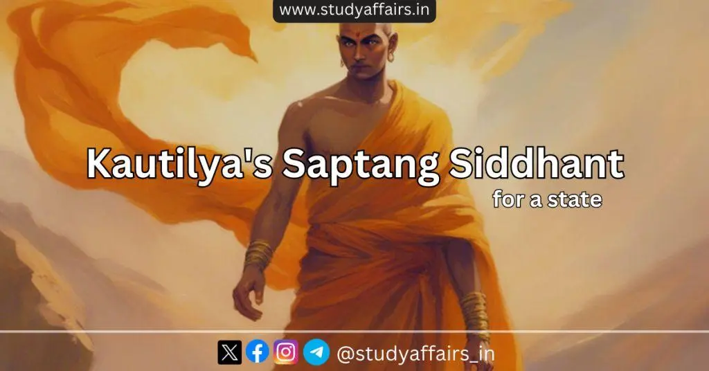 Kautilya (Chanakya) had given ‘Saptang Siddhant’ to describe the form of the state. He has described this in the first chapter of the sixth book of Arthashastra. According to Kautilya’s Siddhant, there are 7 parts of the state – Swami, Amatya, Janapada, Durg, Kosh, Danda and Mitra.
